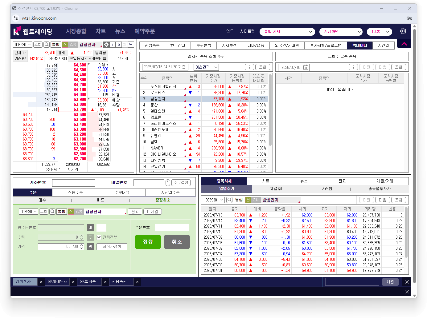 - SK하이닉스: 기술·펀더멘털 모두 우위 → 주력 매수